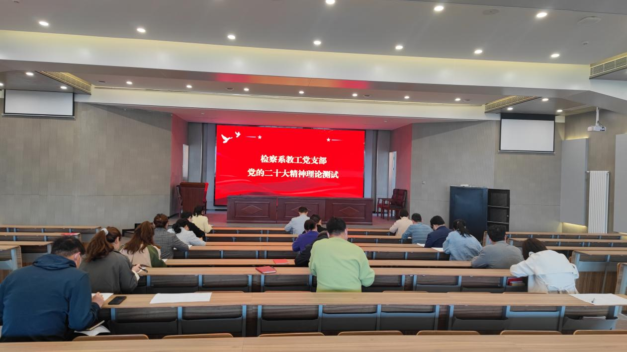 为持续深入学习贯彻党的二十大精神,检验前期学习成效,确保党的二十大精神入脑入心、见行见效,3月15日下午,检察系教工党支部组织全体党员在学院2301培训教室举行党的二十精神理论知识测试。