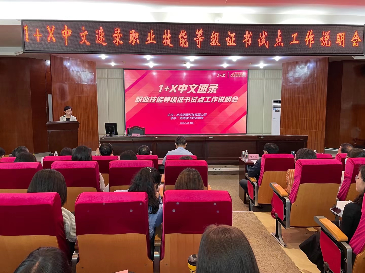 为深入贯彻落实国务院《国家职业教育改革实施方案》和教育部、国家发展改革委、财政部、市场监管总局联合印发的《关于在院校实施“学历证书+若干职业技能等级证书”制度试点方案》,促进相关院校和企业对1+X职业技能等级证书(下称1+X证书)标准的了解,4月10日,由海南政法职业学院和北京速录科技有限公司联合举办的1+X中文速录职业技能等级证书试点工作说明会在海口市举行。来自全国18个省区市、41所职业院校和相关机构共68人出席了说明会。必赢官网副院长殷宏、检察系副主任郭月霞和教务科科长时瑞燕参加了此次会议。