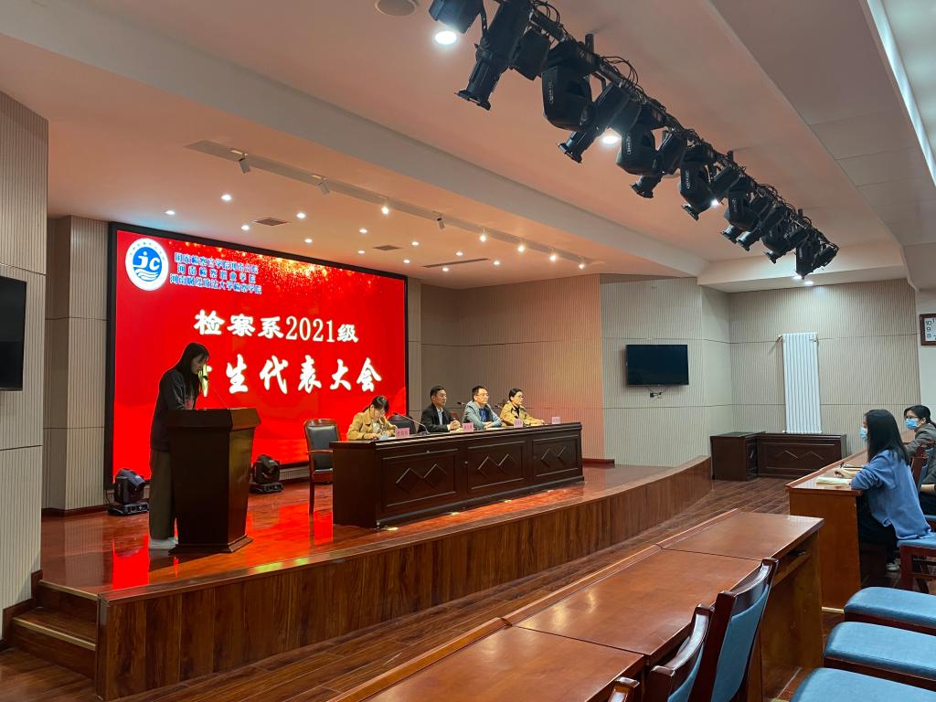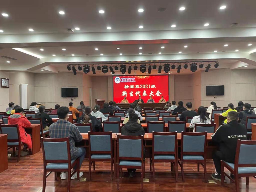 2021年11月17日,检察系2021级学生代表大会在2101报告厅举行,系主任郑志锋、副主任郭荣军、教务科长时瑞燕、学管科长张燕乐、2021级辅导员及88名学生代表参加会议。会议由郭荣军主持。