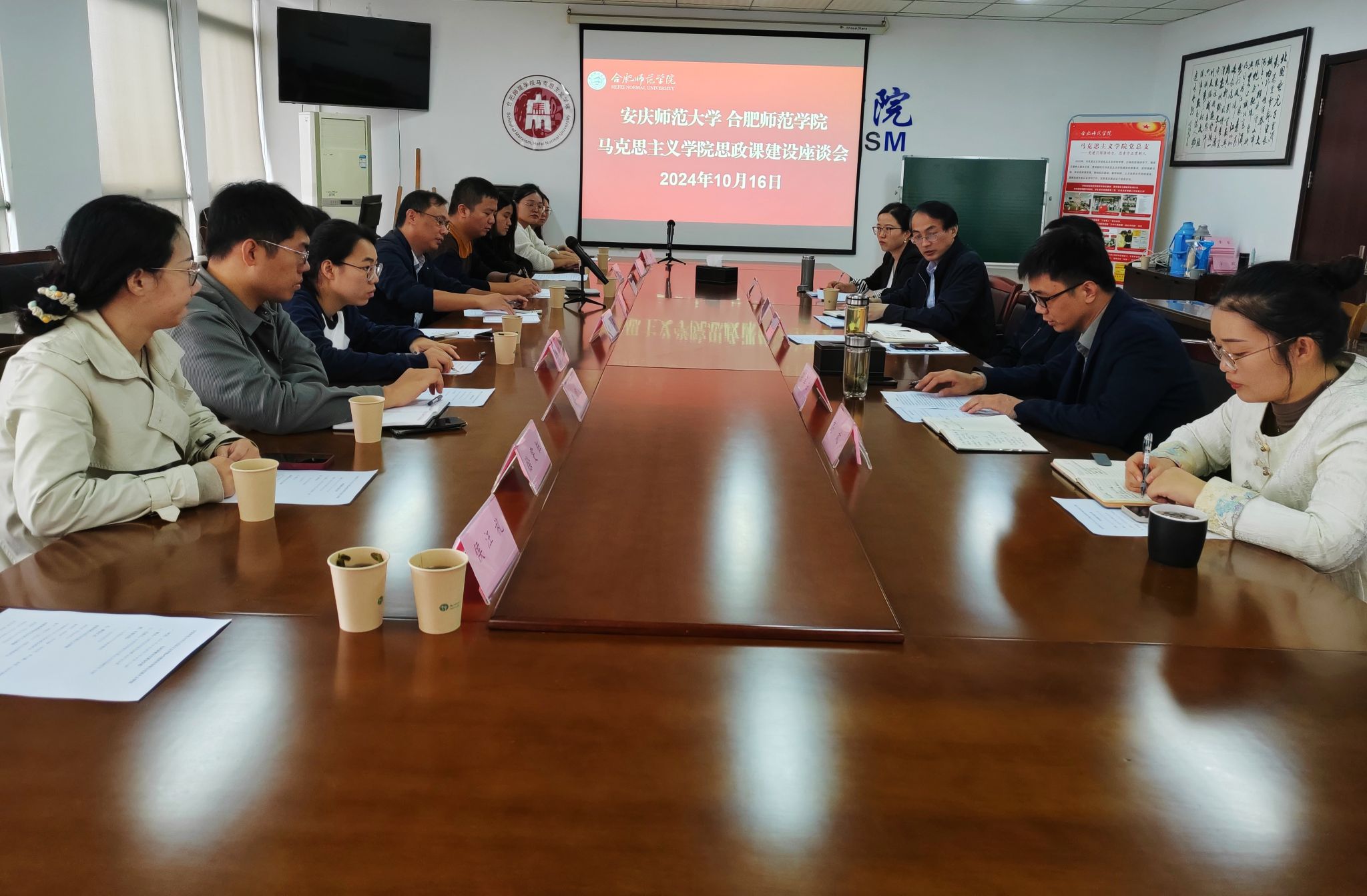 10月16日,学院副院长余江舟带领“习近平新时代中国特色社会主义思想概论”教研室和“形势与政策”教研室教师代表等一行10人赴合肥师范学院beat365在线唯一官网开展调研交流。合肥师范学院beat365在线唯一官网党总支副书记吴世红、副院长方政和相关教研室负责人等参加交流。