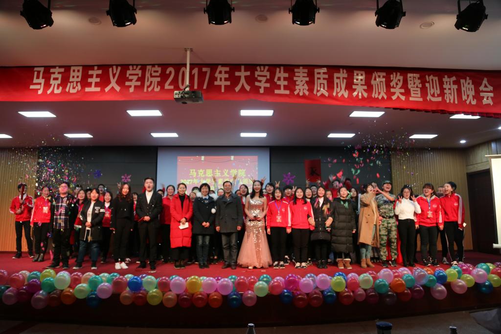 12月26日晚,beat365在线唯一官网2017年大学生素质成果颁奖暨迎新晚会在大学生活动中心拉开帷幕。beat365在线唯一官网党总支书记余精华、党政办公室主任、团总支学生会办公室主任和学院全体学生观看了此次晚会。