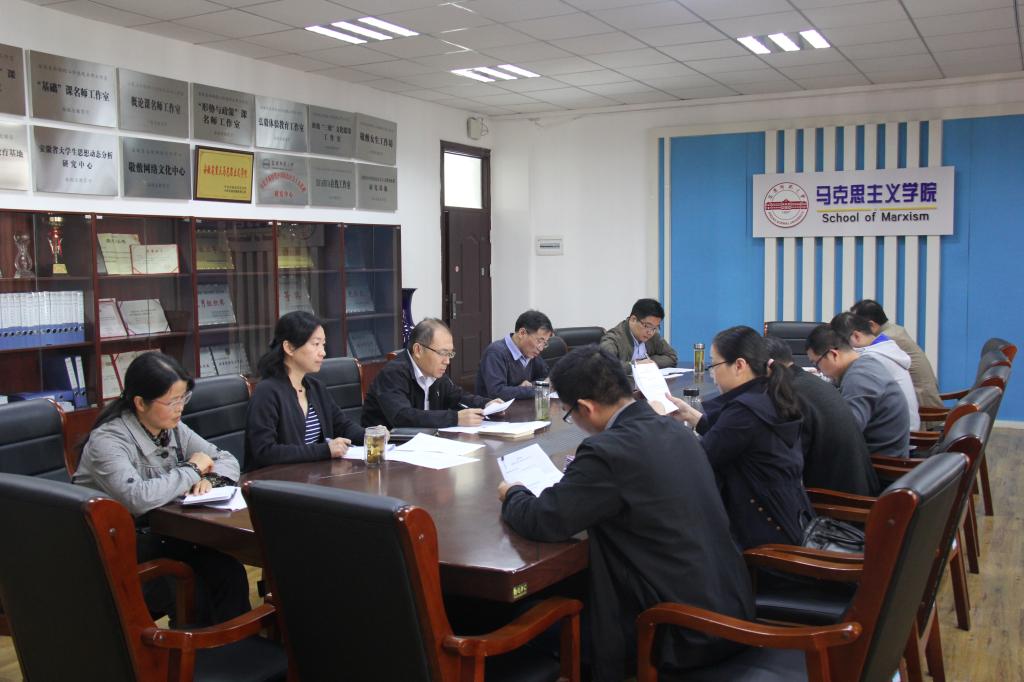 各教研室主任按照《安徽省普通高校基层教学组织(教研室)标准化建设和示范标准(试行)》和《安徽省普通高校基本教学活动标准化建设和示范创建标准(试行)》文件精神,从组织管理、职能发挥、条件保障、优势特色四个一级指标,围绕组织设置、组织运行、教学管理、教学建设、教学改革、科学研究、经费投入、办公场地等二级指标详细汇报了本教研室达标建设情况,并就相关工作进行了交流和讨论。