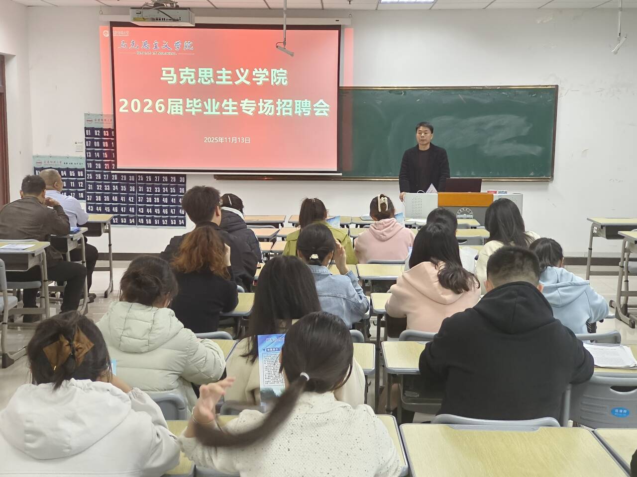 11月13日,学院在Q308教室举办2026届毕业生专场招聘会,毕业班辅导员、就业秘书、肥东凯悦中学、叶集皖西当代中学等数家用人单位及60余名毕业生参加。