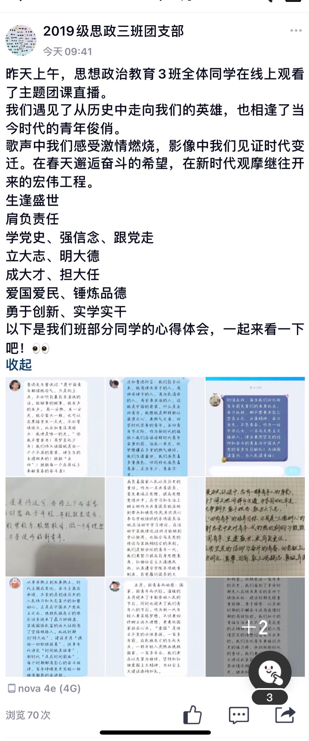5月4日上午10点,由共青团中央和全国学联举办的“学党史,强信念,跟党走”主题云团课准时上线,学院组织学生积极学习主题团课,线上交流心得感悟。