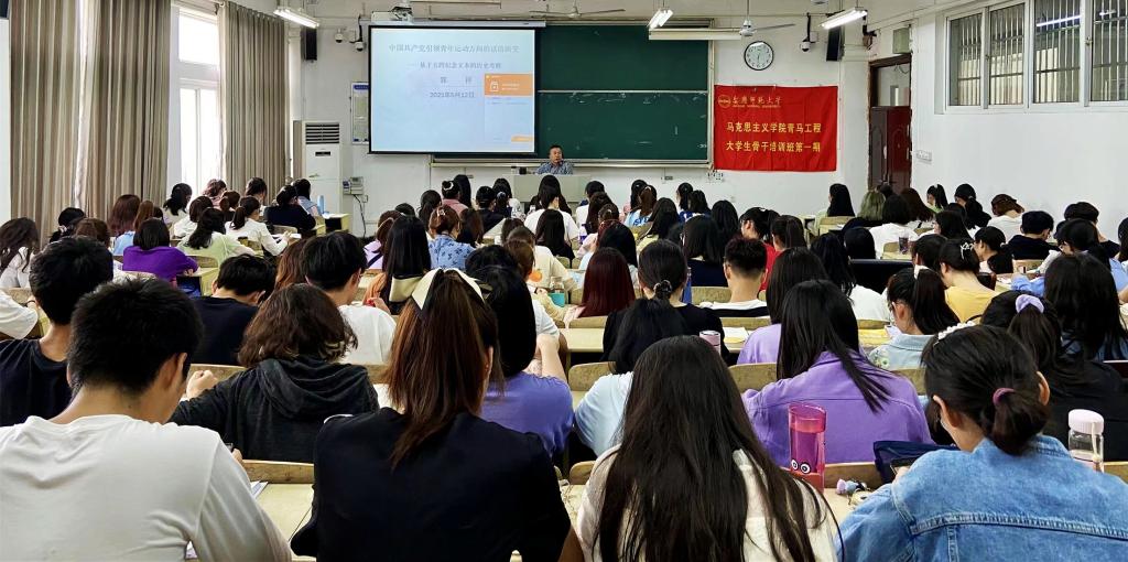 5月12日,学院第一期“青马班”第五课开课,学院郭祥老师围绕“话语演变”、“理论逻辑”与“实践逻辑”等内容讲述“新时代青年运动的主题与方向”,引领青年学子高扬理想旗帜,坚定跟党走,建功新时代。
