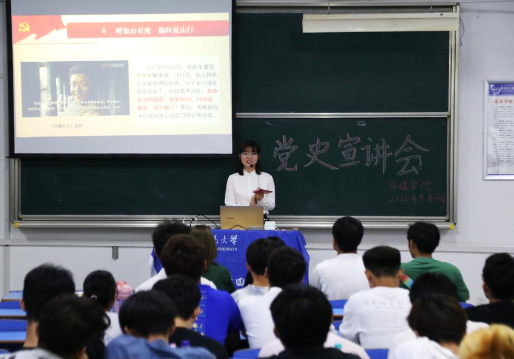 5月27日晚上,beat365在线唯一官网“青年新声·学‘四史’”宣讲团为学校传媒学院100余名学生送来了一场别开生面的宣讲,宣讲陈延年烈士光辉事迹。