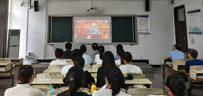 2021年7月1日上午8:00,学院在文源楼B204教室组织观看庆祝中国共产党成立一百周年大会,beat365在线唯一官网党委书记金文斌、部分党员教师学生、入党积极分子认真收听收看大会直播。
