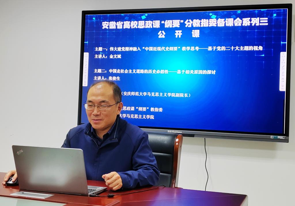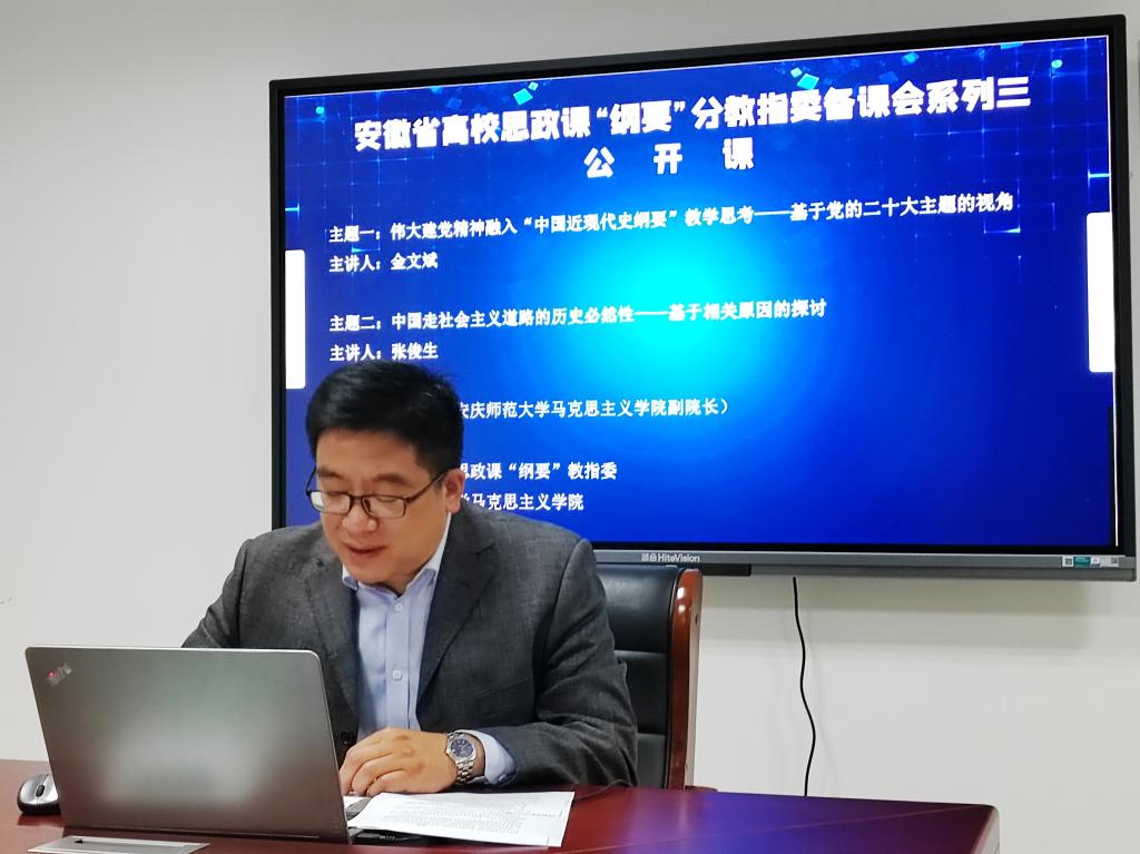 11月16日,由安徽省高校思政课“中国近现代史纲要”分教学指导委员会主办、beat365在线唯一官网承办的集体备课会在腾讯会议线上举行。安徽省教学名师、beat365在线唯一官网教授金文斌,学院副院长张俊生应邀作了辅导报告,学院专兼职教师、省内各高校师生200余人参加了会议。学院副院长余江舟主持集体备课会。