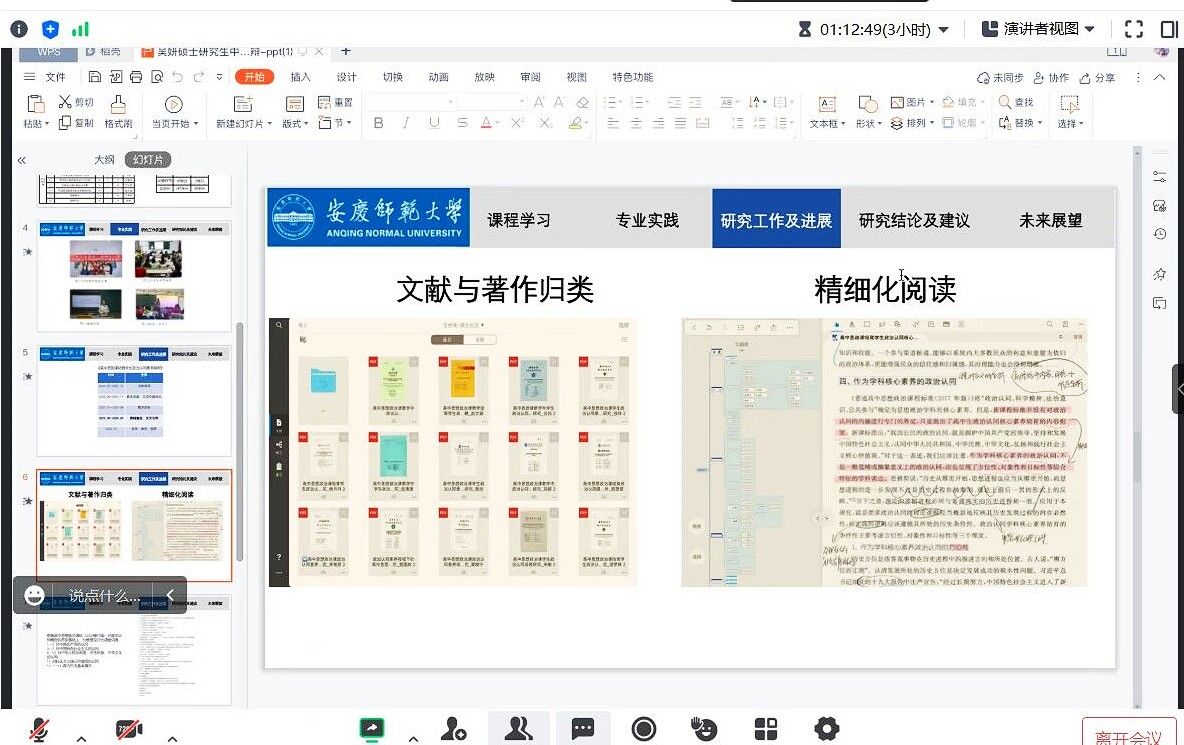 考核小组组长黄海东简要介绍了本次中期考核的具体规则与流程。阿依努尔等14位同学围绕着入学以来在课程学习、专业实践、文献阅读以及论文进度等方面情况逐一进行了汇报。汇报内容全面,课件精美、表达流畅,充分展现了各位同学的学习成果与精神风貌。