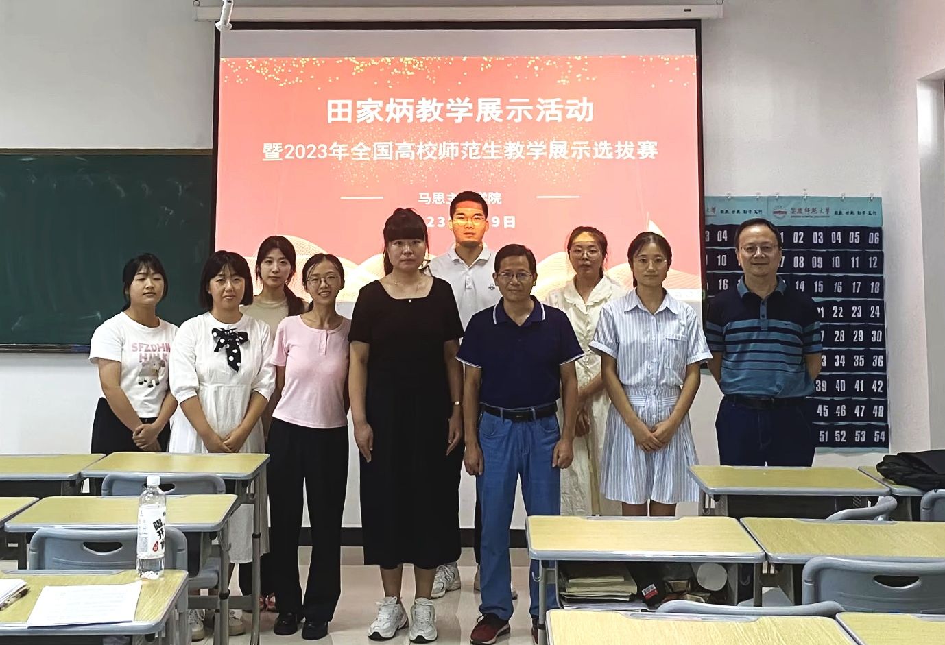 2023年9月9日,2023年全国“田家炳杯”全日制教育硕士专业学位研究生(学科教学·思政)教学技能大赛校内选拔赛在Q301举行。学院学科教学(思政)专业8名研究生参加了本次比赛,安庆一中的高中政治教师施闰生、武冰清和学院副教授张铭担任评委。