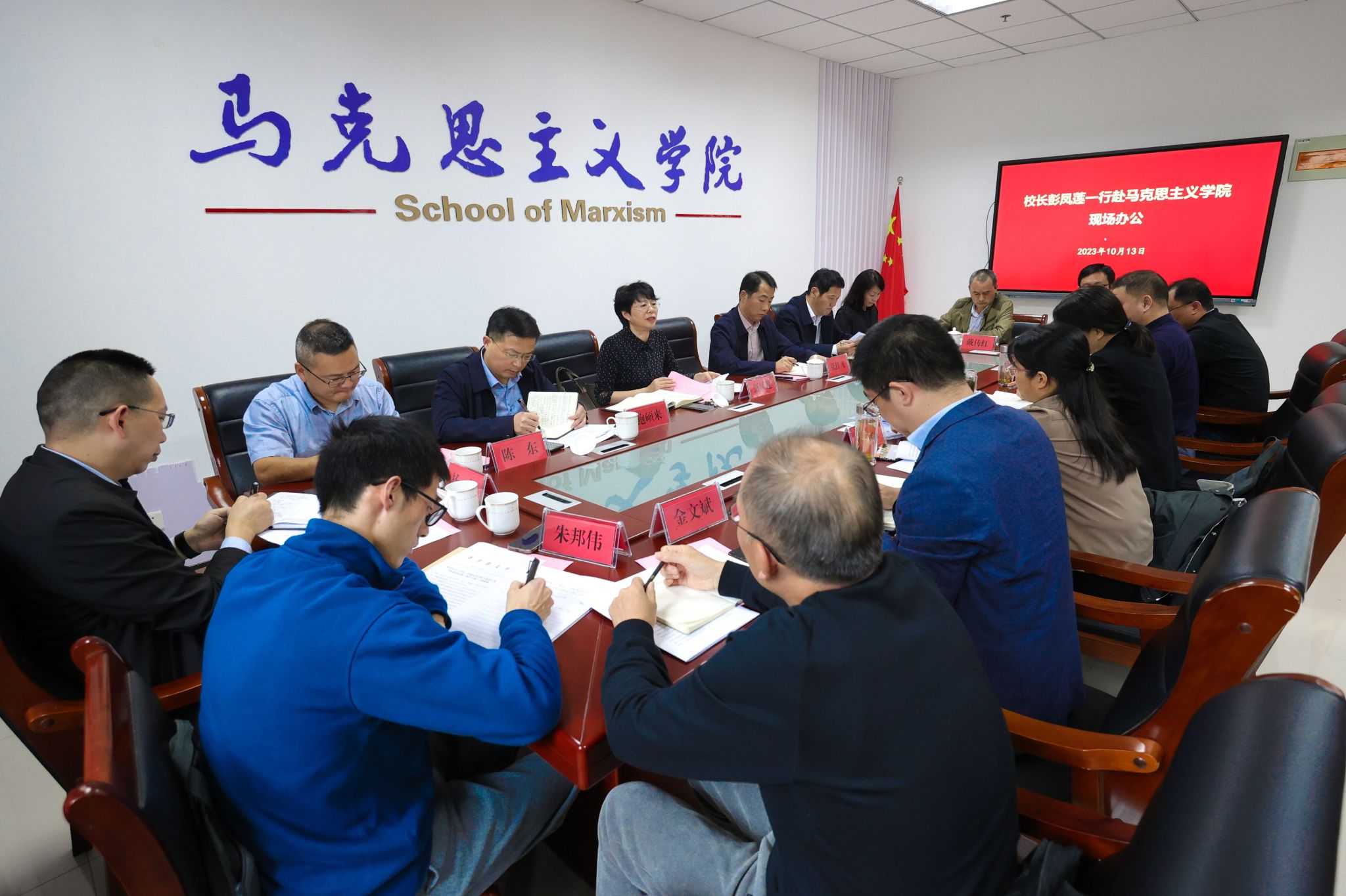 10月13日,校长彭凤莲深入学院调研,召开推动贯彻执行《普通高等学校beat365在线唯一官网建设标准(2023年版)》现场办公会。校党委常委陈秀、张红飞及党委宣传部、学科建设处、人事处、教务处、科研处、研究生院、财务处等单位负责人参加调研。