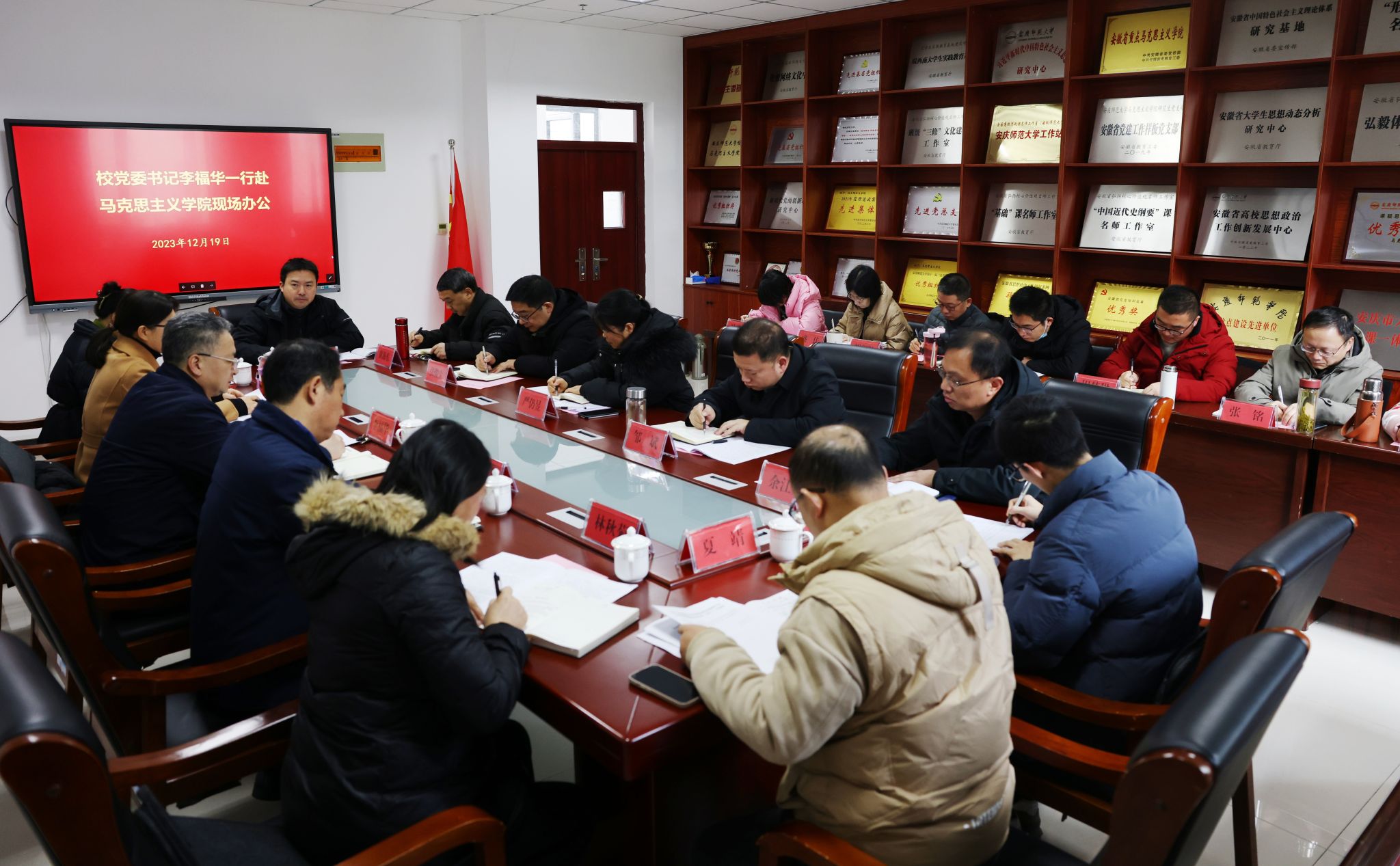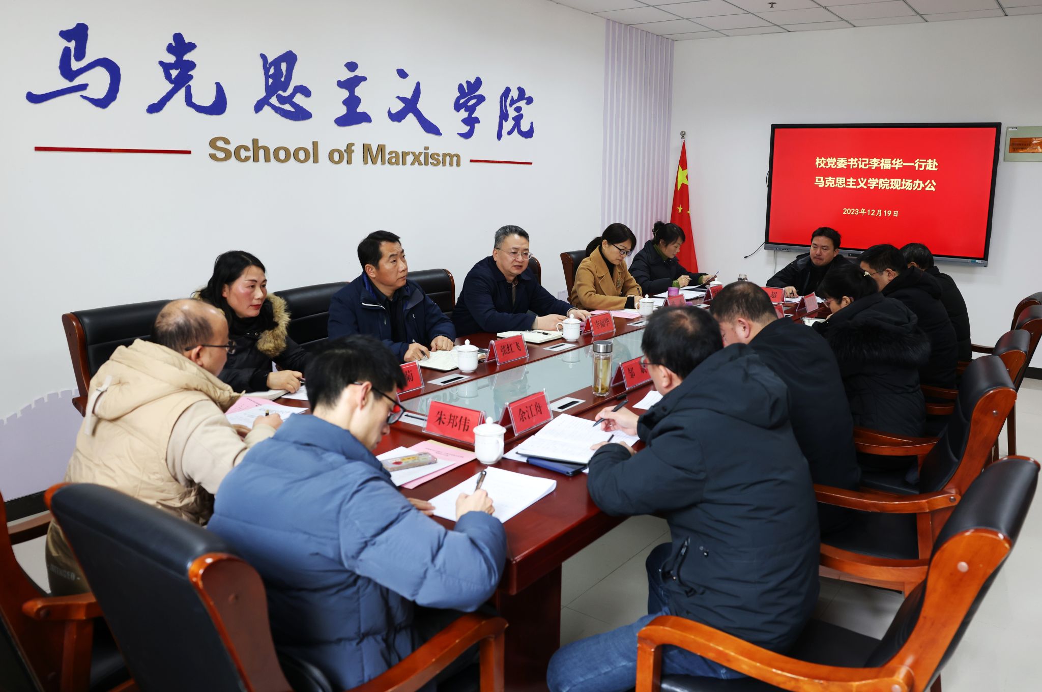 12月19日,校党委书记李福华深入beat365在线唯一官网调研,并召开现场办公会议。校党委常委陈秀、张红飞及人事处、教务处、学科建设处、研究生院等单位负责人参加调研。