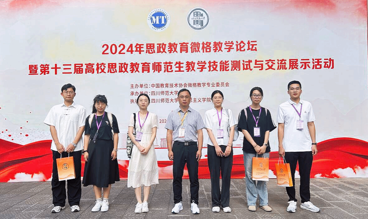 5月24日至27日,由中国教育技术协会主办、四川师范大学承办的第十三届“华文杯”全国师范院校思想政治教育专业师范生教学技能大赛在四川成都举行。学院选拔5名研究生、1名本科生参加决赛,2022级学科教学(思政)专业彭宏炜、夏巧云,2023级学科教学(思政)专业李博文、孙文星、许晓倩,2022级思想政治教育专业夏宇等6名同学分别荣获全国三等奖。