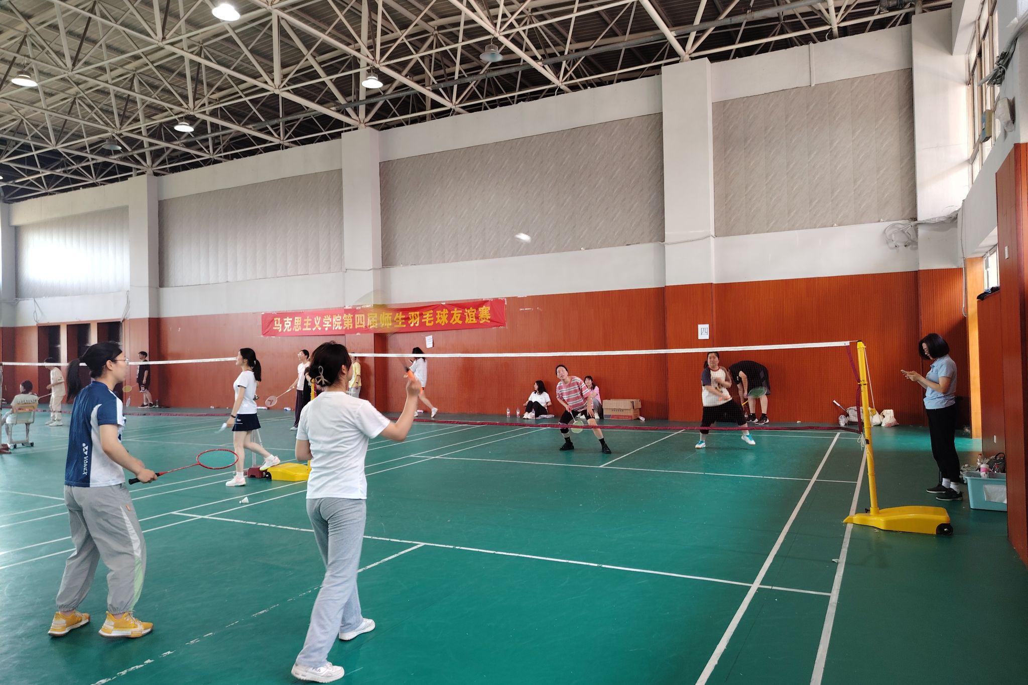 5月18日,学院在体育馆二楼羽毛球馆开展以“展羽健魅力,享运动活力”为主题的第四届师生羽毛球友谊赛,学院师生100余人参加。
