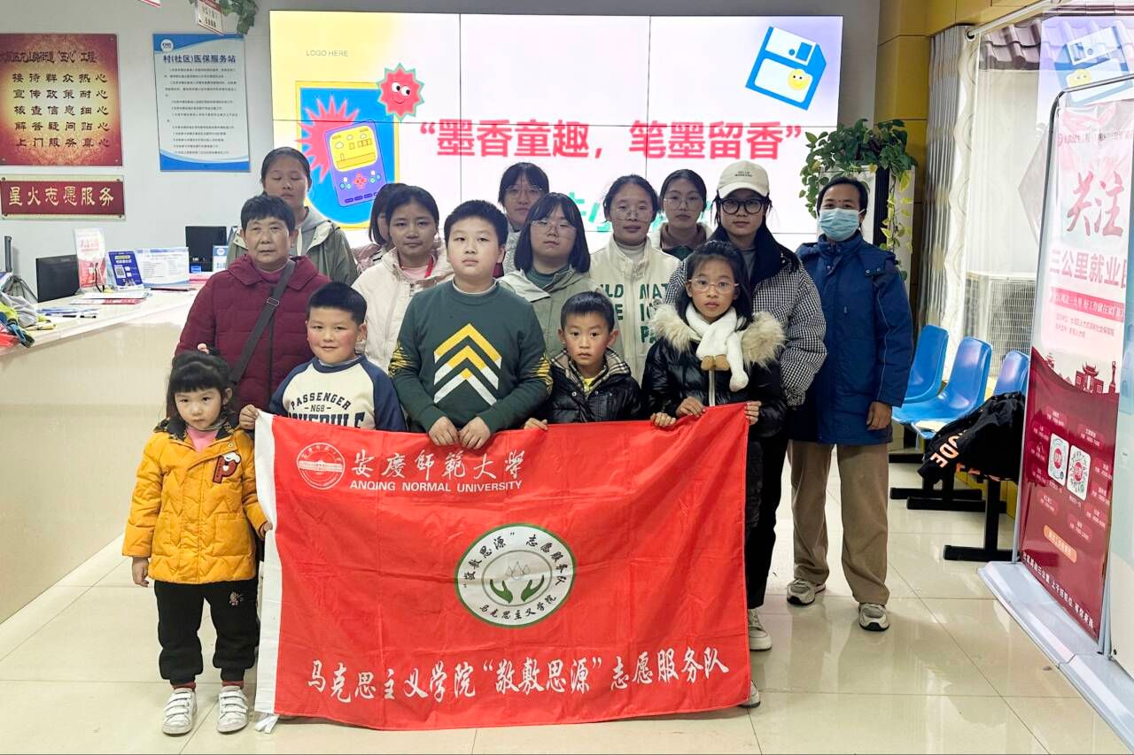 11月26日,学院“敬敷思源”志愿服务队联合团委“拾艺”俱乐部在安庆市大观区荣升社区开展“墨香童趣,笔墨留香”书法小课堂志愿活动,诸多社区民众、中小学生积极参与。