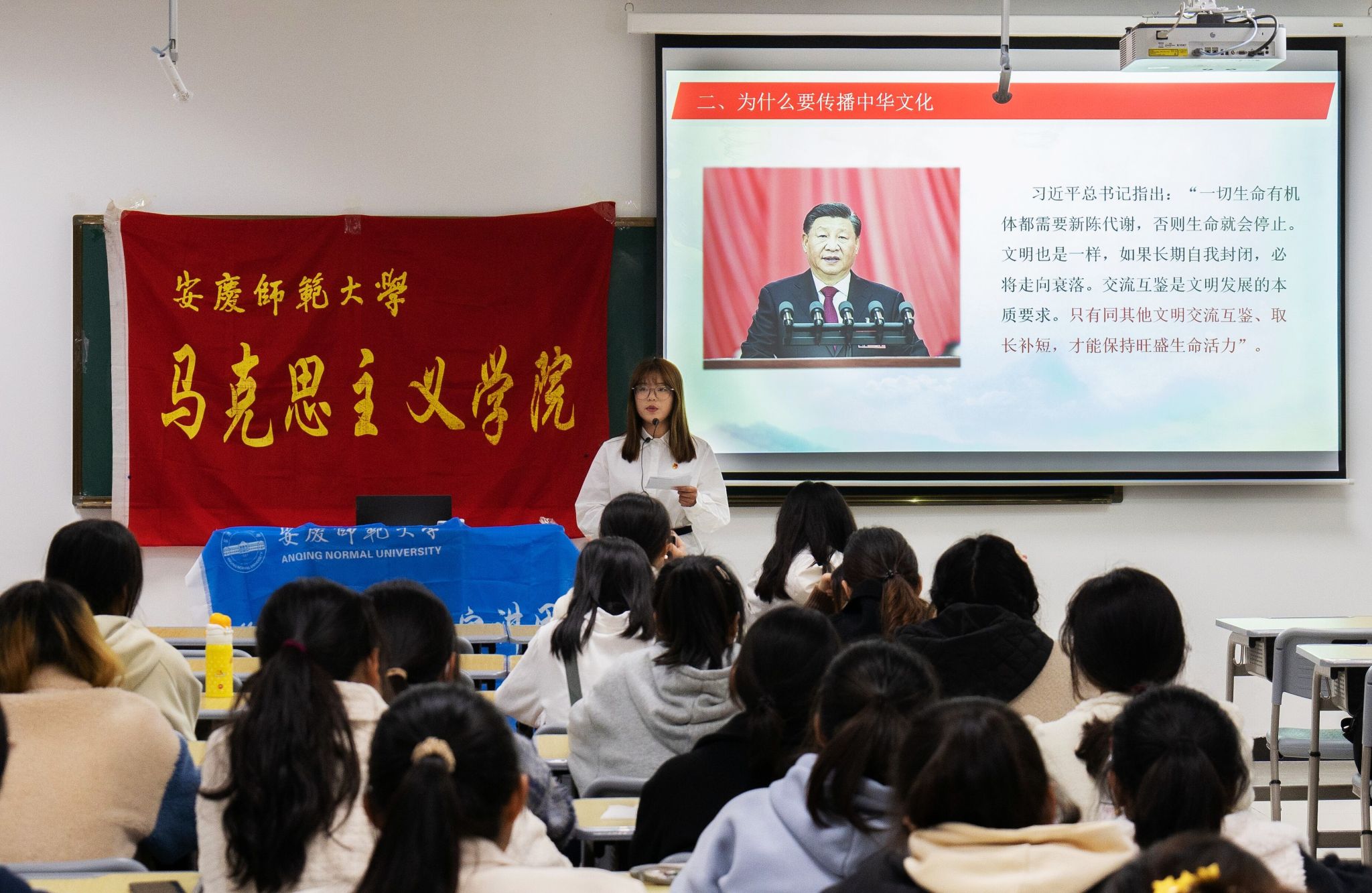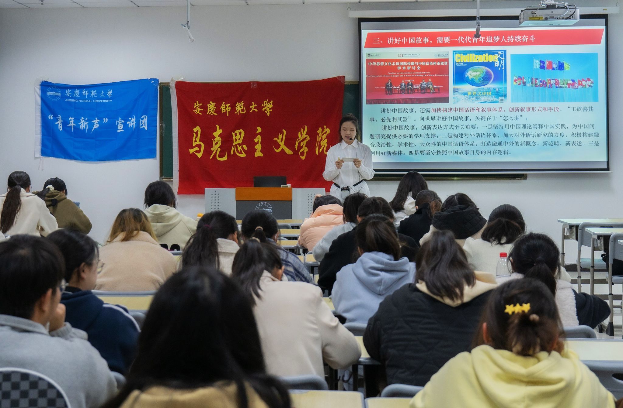 3月23日,学院在Q212开展以“增强中华文明传播力影响力,讲好中国故事”为主题的宣讲活动,本次宣讲由“青年新声”宣讲团主讲,学院第三期青马班和第二期团校培训班全体学员参加。