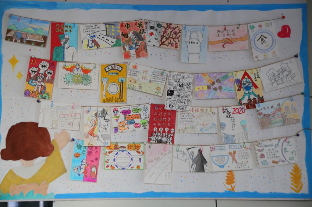 在展览现场,一张张色彩艳丽的明信片吸引了许多学生和老师驻足观看。有医护人员与新冠病魔作斗争的绘画,有疫情防控小知识的宣传,也有把传统门匾绘成光盘行动宣传物的创意新作……每一张创意明信片都充分展示了学生创新创意思维的活跃。