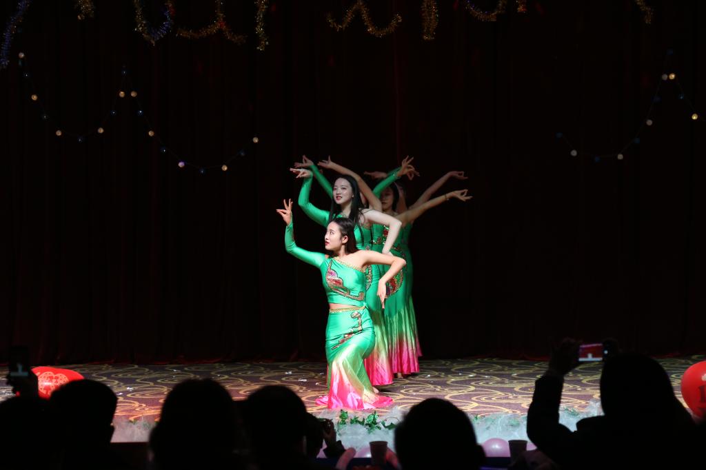 合唱《追光者》将人们带入青涩甜美的爱情世界;朗诵《陌上花开》独具特色,朗读者清晰明快的声音配合古筝优美的曲调,引人入胜。清风弄竹影,明月描花容。月光下的竹林里,一群傣族姑娘跳起别样的舞姿,吹起相似的笙箫,把悠悠情思融进了《月光下的凤尾竹》。葫芦丝演奏加民族舞《月光下的凤尾竹》展现了葫芦丝的悦耳动听和傣族舞的优雅轻快。
