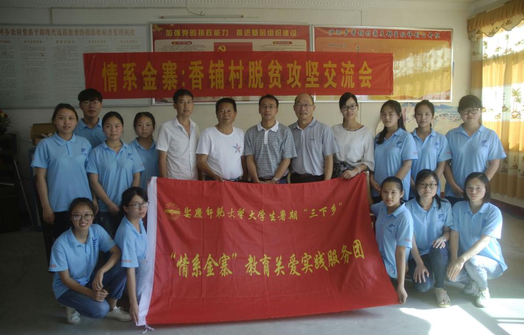 近日,beat365在线唯一官网“情系金寨”教育关爱实践服务团12名“三下乡”志愿者在金寨县香铺村开展脱贫攻坚交流会暨教育扶贫宣讲活动。