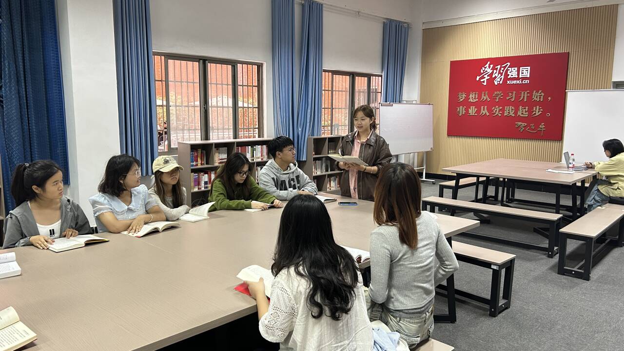 读书会上,大家认真聆听彼此的阅读感悟,深入思考,积极参与交流和互动。田梦甜分享阅读《习近平谈治国理政》第五卷第五专题“一体推进教育科技人才事业发展”的学习感悟。他结合同学们的实际学习和生活,鼓励同学们要多读原著悟原理,把握好课堂时间学习知识,努力做到学思用贯通,知信行合一,把阅读经典著作作为提升理论素养的重要途径,为教育强国建设贡献出自己的力量。